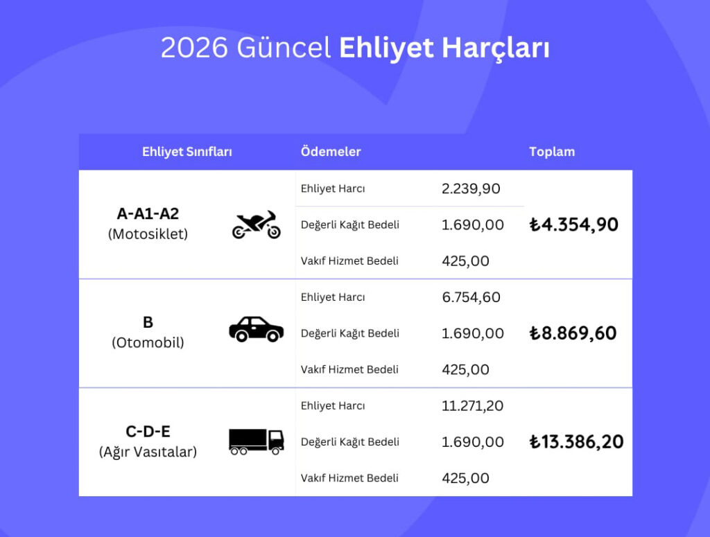 Sürücü Kursu Fiyatları listesi yıllık olarak güncellenmektedir. Bu ücretler İstanbul’un tamamında uygulanmaktadır. 2026 yılı ücretleri yıl sonuna kadar geçerlidir. 2026 yılı Ümraniye Sürücü Kursu Ücretleri açıklandığında sitemize eklenecektir.